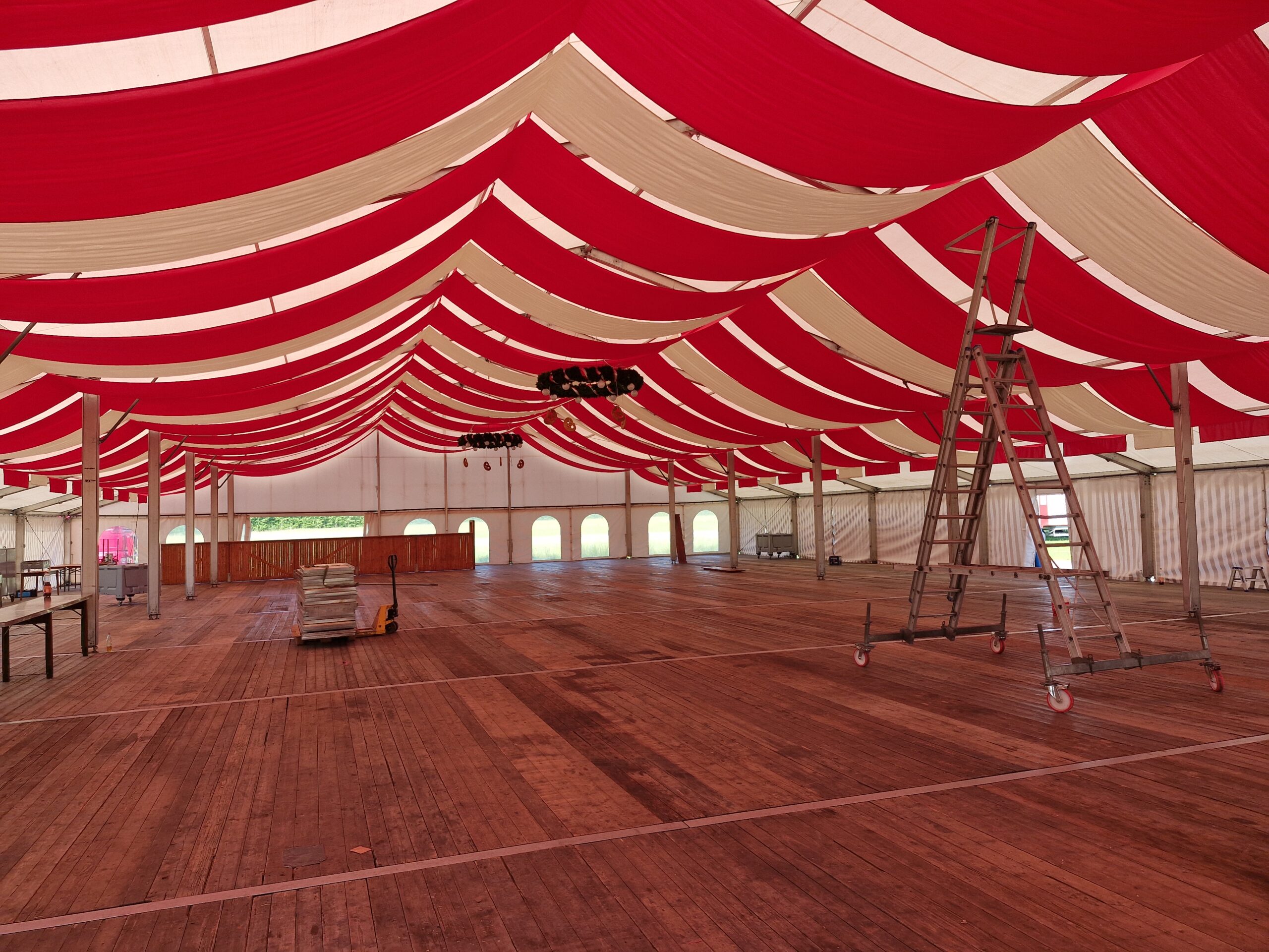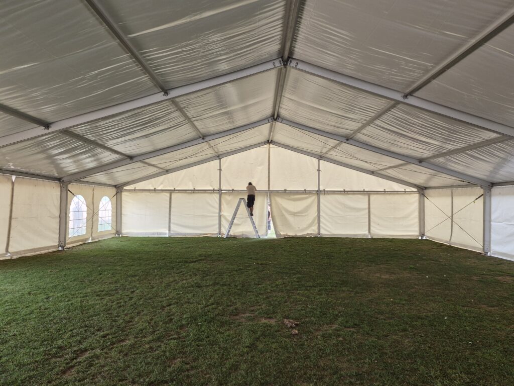 Je nach Zeltgröße und Projektumfang stellen wir einen erfahrenen Zeltmeister oder eine anleitende Fachkraft zur Verfügung. Auf Wunsch können wir zusätzlich Hilfskräfte organisieren oder den Auf- und Abbau vollständig übernehmen. Gemeinsam besprechen wir im Vorfeld, welches Modell für Ihre Veranstaltung am sinnvollsten ist. So stellen wir sicher, dass der Aufbau fachgerecht, effizient und termingerecht erfolgt.