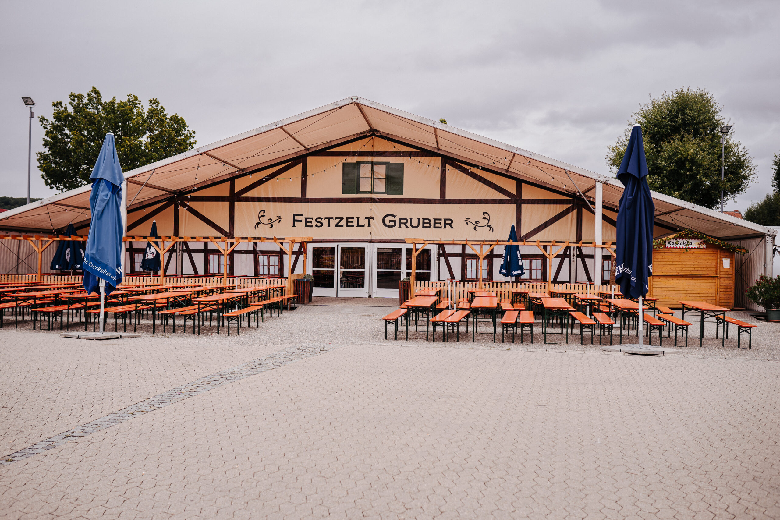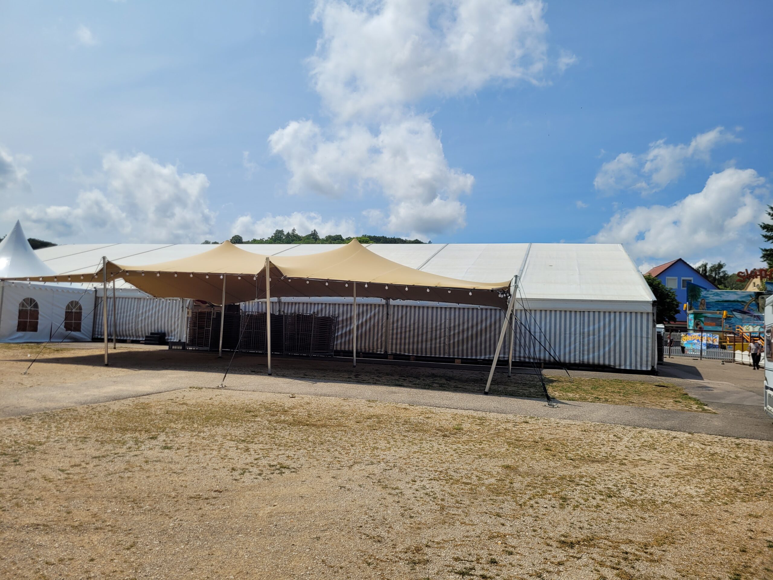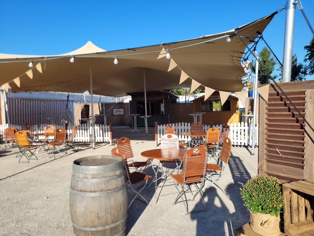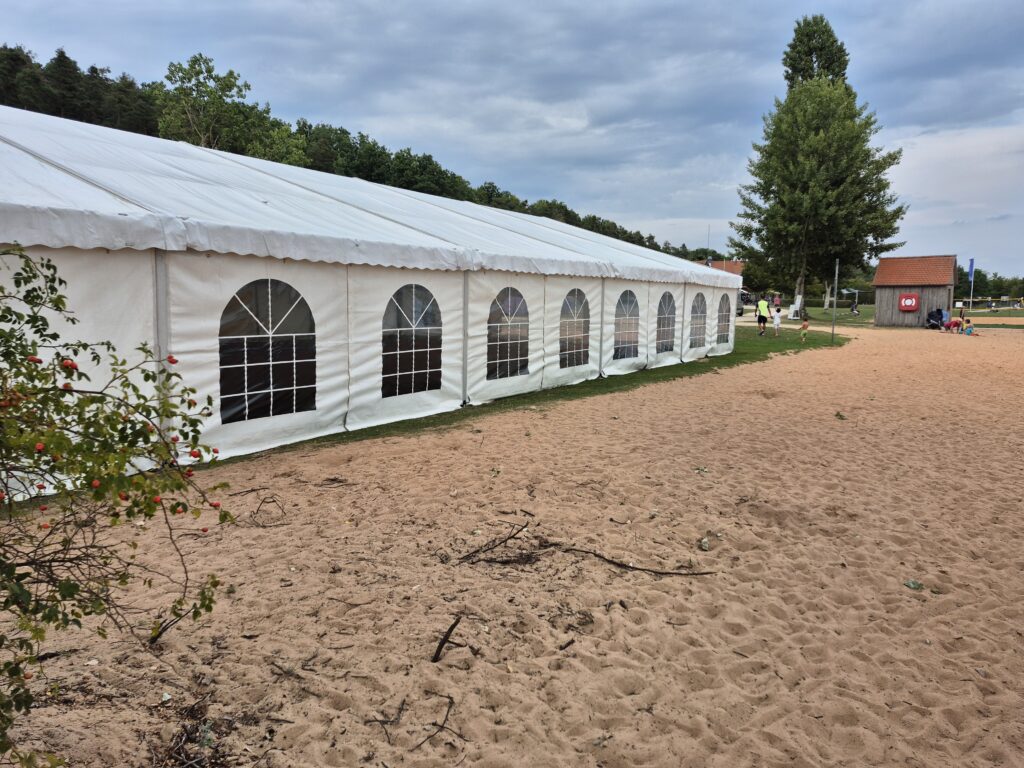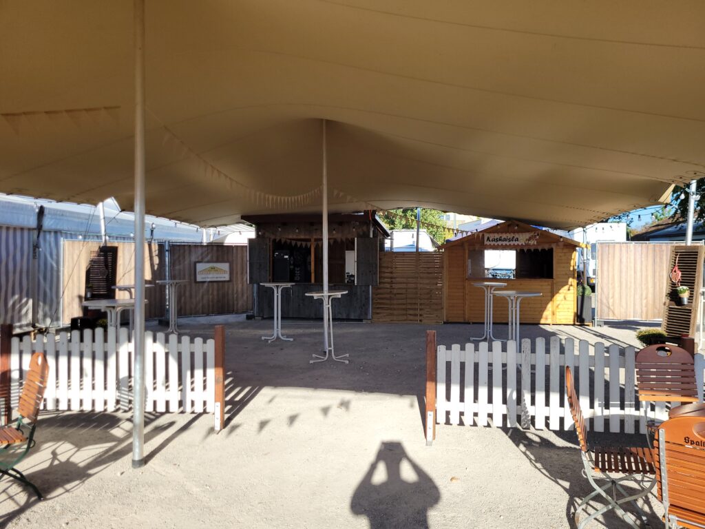 Darüber hinaus besteht die Möglichkeit, das Festzelt durch einen 3 x 10 Meter großen Wirtschaftsanbau zu erweitern, der zusätzlichen Raum für Catering, Ausschank oder Lagerflächen schafft und so für eine optimale Organisation im Hintergrund sorgt.