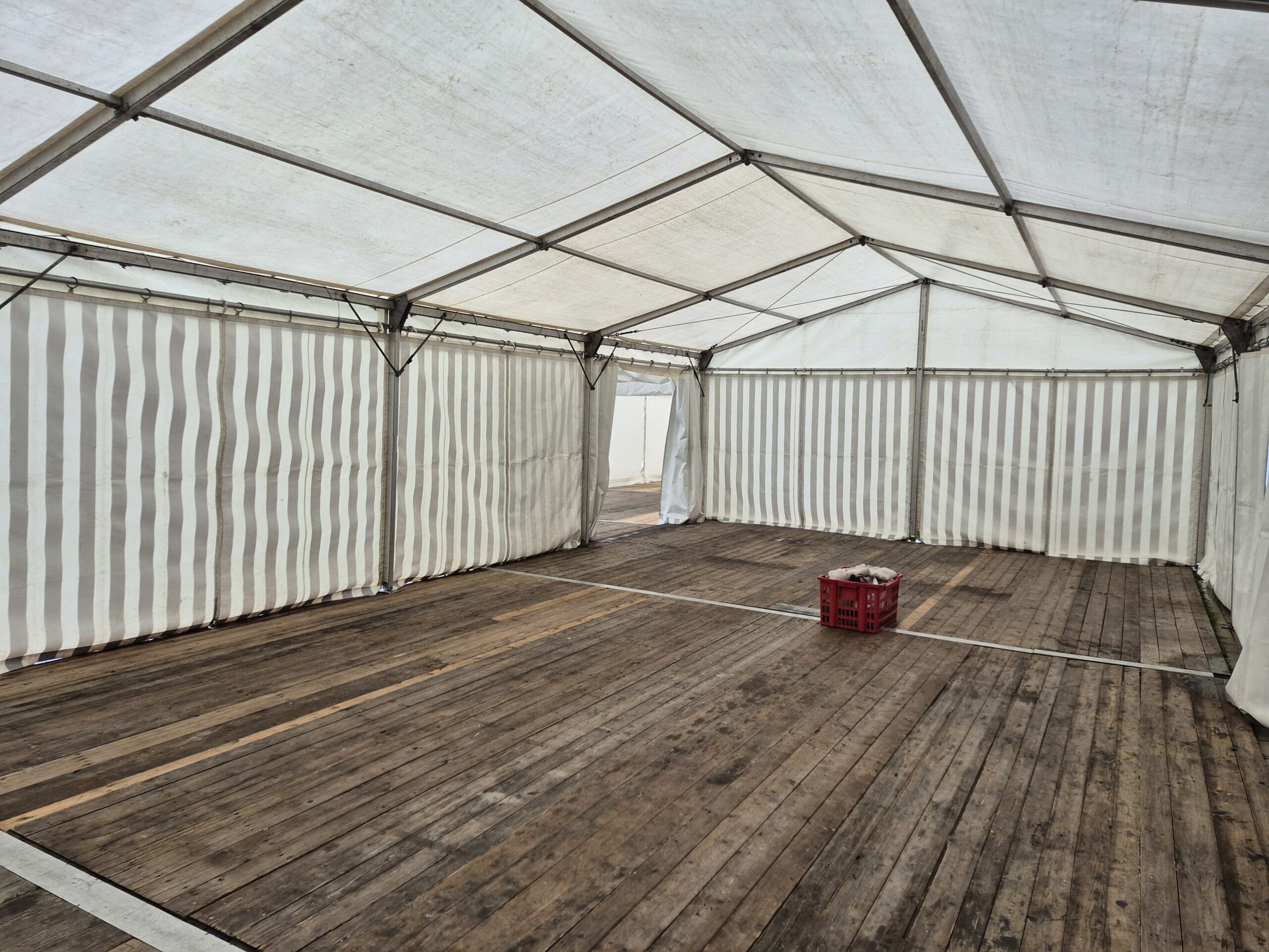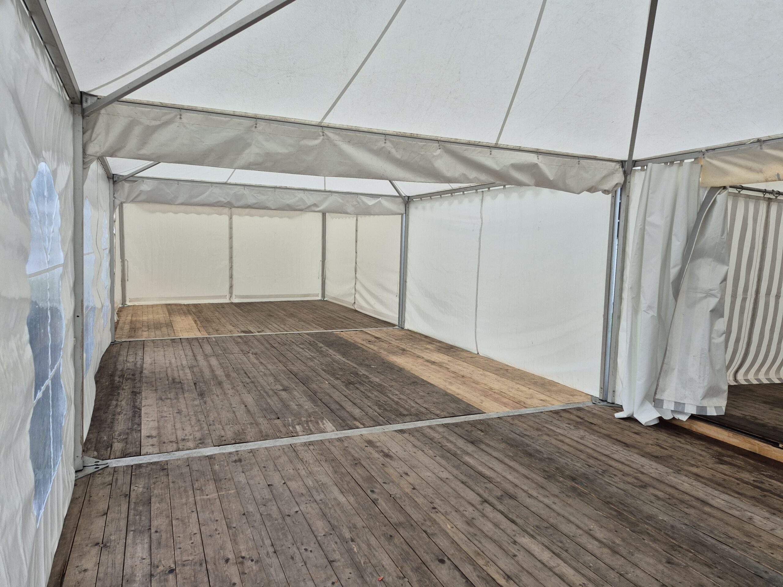 Zulassung: Das Zelt verfügt über ein gültiges Prüfbuch für „fliegende Bauten“ gemäß dem aktuellen Sicherheitsnormen.