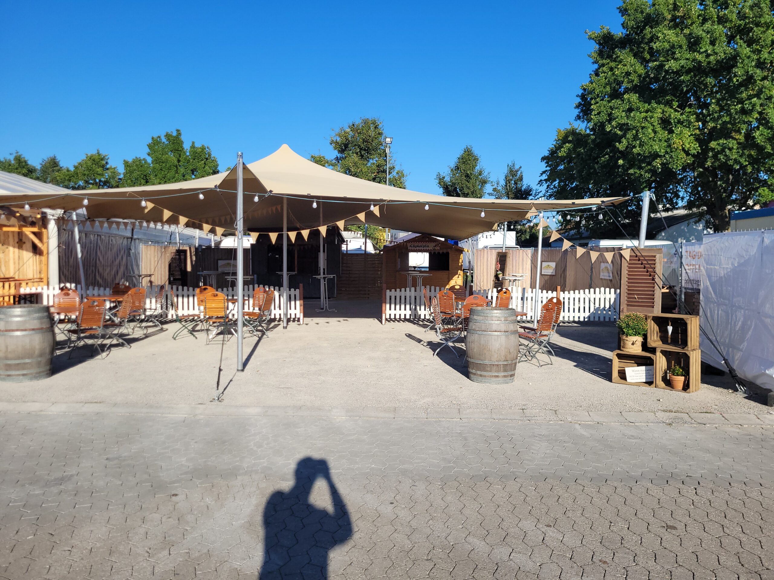Ja, mehrere Zelte lassen sich problemlos miteinander kombinieren. Wir setzen diese Lösungen regelmäßig selbst als Festwirte um und verfügen über umfangreiche Erfahrung in der Planung größerer Veranstaltungsflächen. Durch flexible Anbaumöglichkeiten können wir verschiedene Zeltgrößen verbinden und so individuelle Raumkonzepte schaffen – beispielsweise für separate Bewirtungsbereiche, Bühnenflächen oder Backstage-Zonen. Gerne unterstützen wir auch bei der gesamten Organisation und Strukturierung Ihres Events.